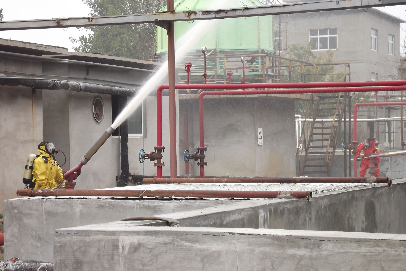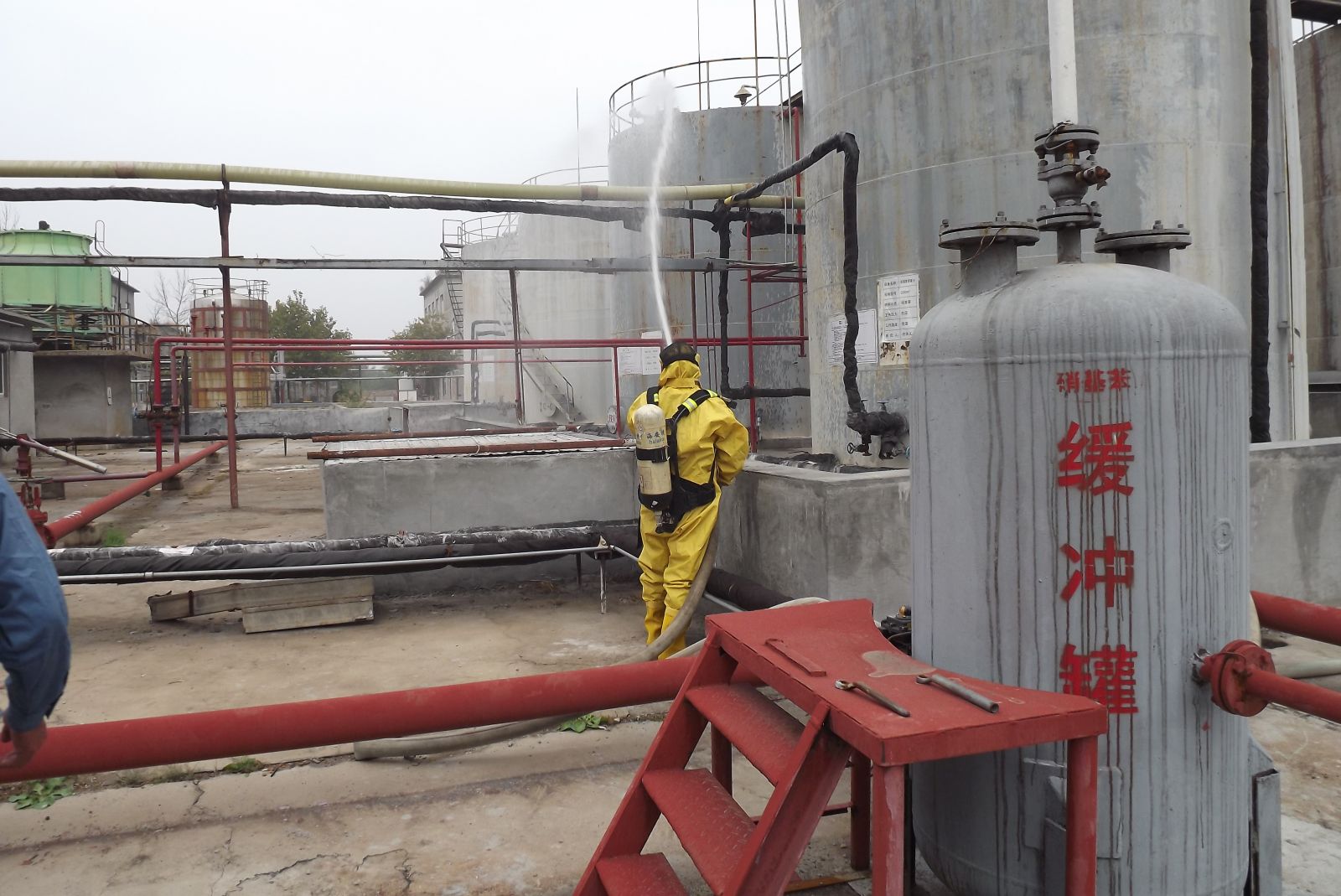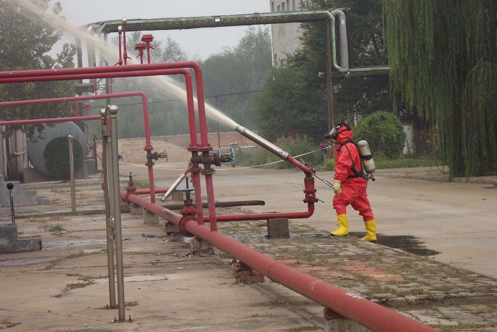 德州虹橋染料化工有限公司生產(chǎn)部為增強(qiáng)公司各部門(mén)生產(chǎn)防范意識(shí)和提高應(yīng)急處置能力,強(qiáng)化應(yīng)對(duì)各類(lèi)突發(fā)事故的處理技能,提高職工快速反應(yīng)能力以及各部門(mén)協(xié)同作戰(zhàn)能力,確保在發(fā)生突發(fā)事故時(shí),能夠有效組織,快速反應(yīng),臨危不亂,最大限度地減少危害事故的發(fā)生。2019年10月11日上午組織公司各部門(mén)員工在硝基苯儲(chǔ)罐區(qū)進(jìn)行了應(yīng)急消防演練。