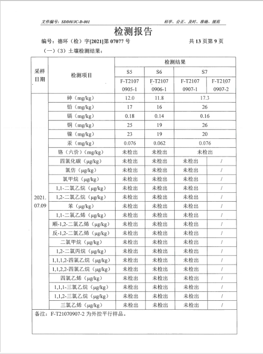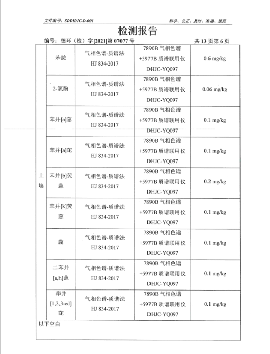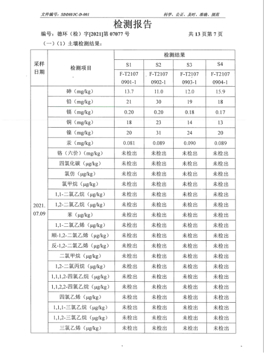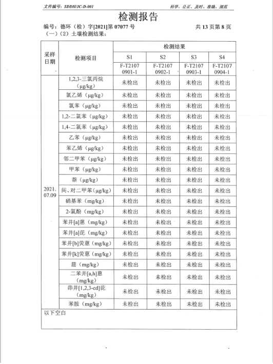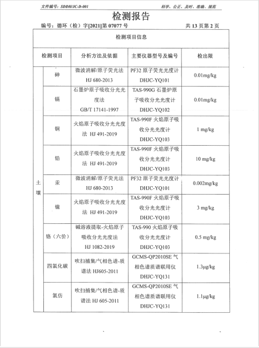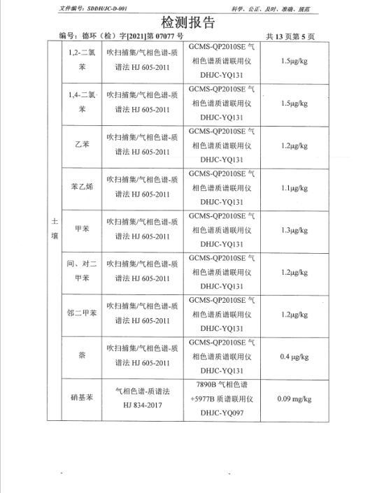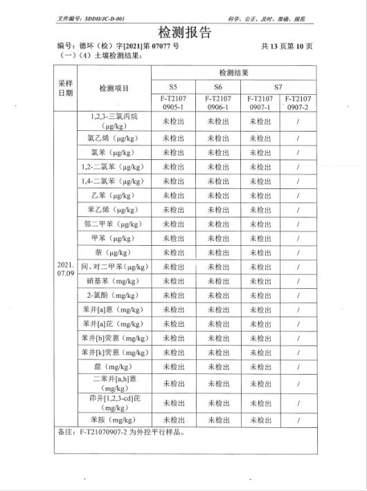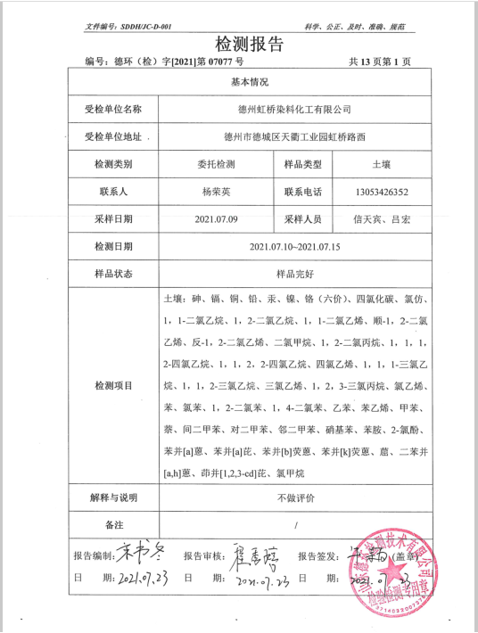 德州虹橋染料化工有限公司土壤檢測報告(2021二季度)